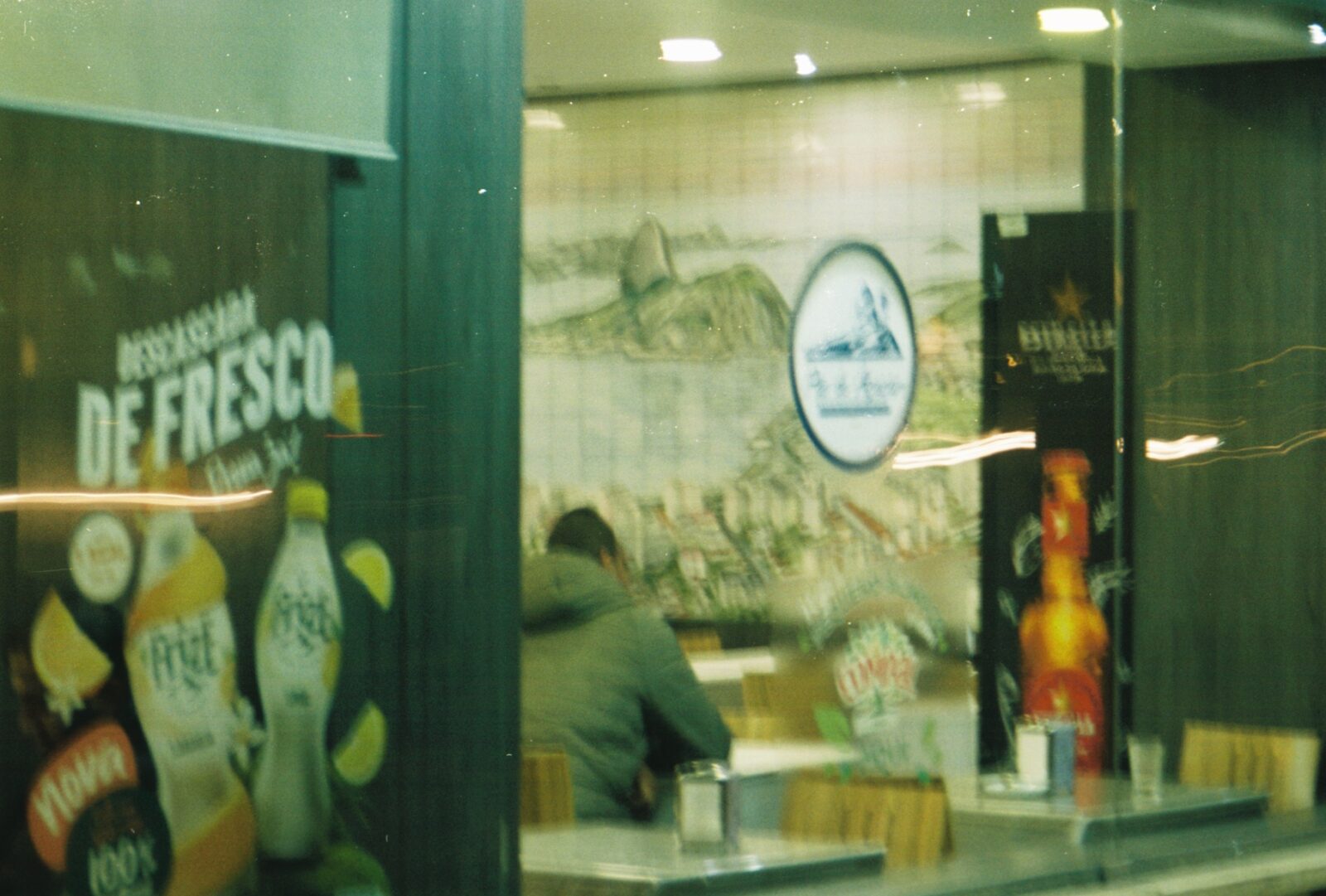 Atrás do balcão, em momentos de menor movimento observa a vida acontecendo do lado de fora. Se sente dentro de um aquário, observando as pessoas passando pela vidraça que o separa da vida que almeja. Nos poucos dias de sol no inverno do Porto, o sentimento de sufocamento o consome mais. É quando ele mais quer sentir o calor da liberdade.
